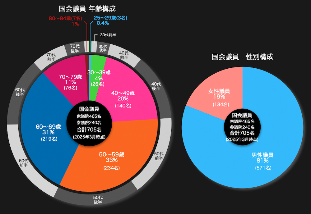 国会議員の生年月日、性別は衆議院、参議院公式ページより