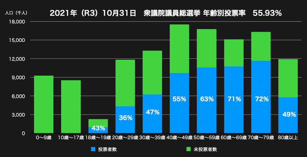 出典:「よくわかる投票率」総務省選挙部